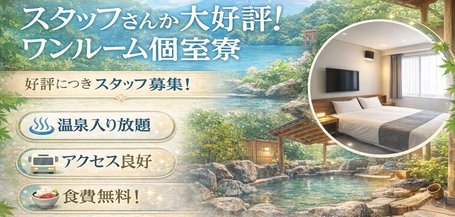 福利厚生 個室寮完備・寮費無料・食事支給有り(出勤日×1食)・水光熱費無料、弊社規定往復交通費支給有り(上限20,000円)・給与前払い制度・温泉入浴可・ネット環境有