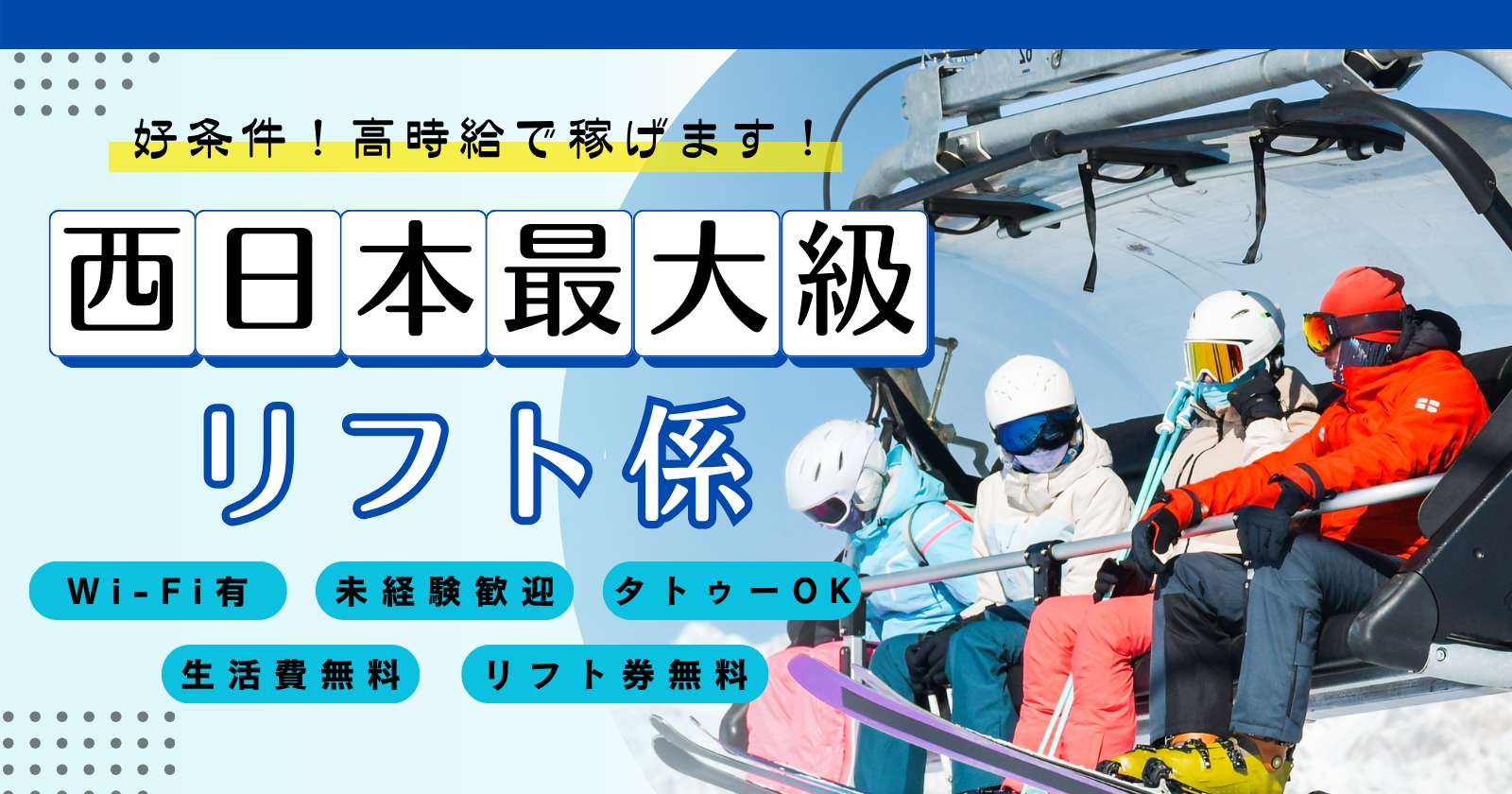 岐阜県郡上のスキー場で時給1,200円、スキー場リフト係の住み込みリゾートバイト!(求人No.476535)