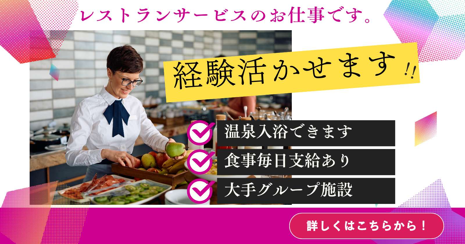 兵庫県有馬温泉のリゾートホテルで時給1,400円、レストランサービスの住み込みリゾートバイト!(求人No.431038)