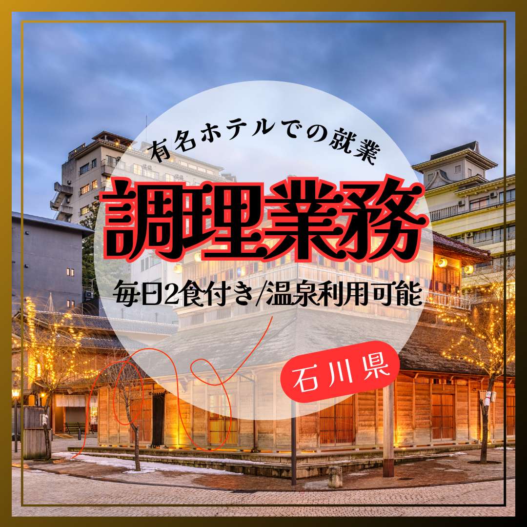 石川県加賀温泉のリゾートホテルで時給1,500円、調理補助の住み込みリゾートバイト!(求人No.530389)