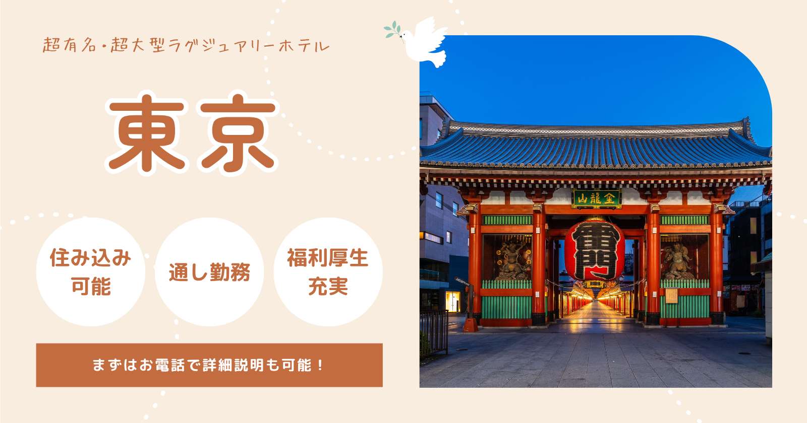■上京支援■都内に個室寮完備■水光熱費無料■初期入居費用無料■通勤交通費支給■社会保険完備■雇用保険完備■労災保険完備■制服貸与■給与前払い制度■従業員食堂完備■社員登用有■