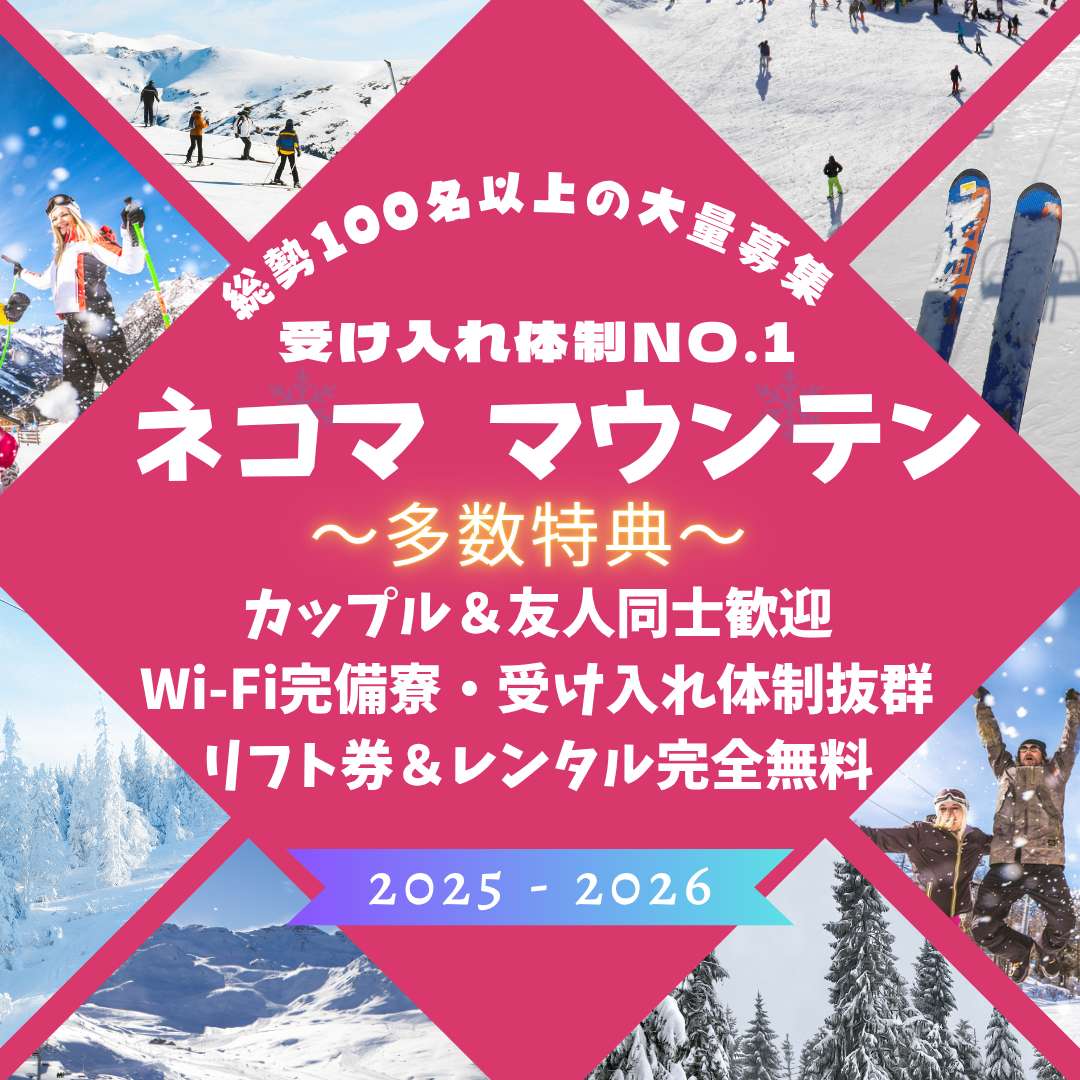 福島県ネコママウンテンのスキー場で時給1,300円、全般業務の住み込みリゾートバイト!(求人No.532450)