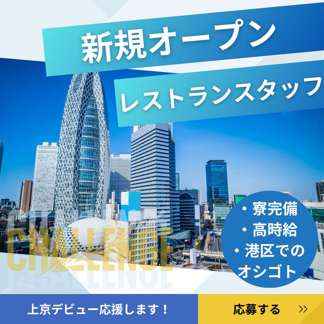 東京都港区の飲食店で時給1,470円、全般業務の住み込みリゾートバイト!(求人No.532256)