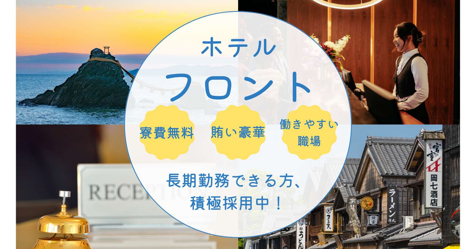 三重県鳥羽市のリゾートホテルで時給1,300円、フロント・ベルの住み込みリゾートバイト!(求人No.540602)