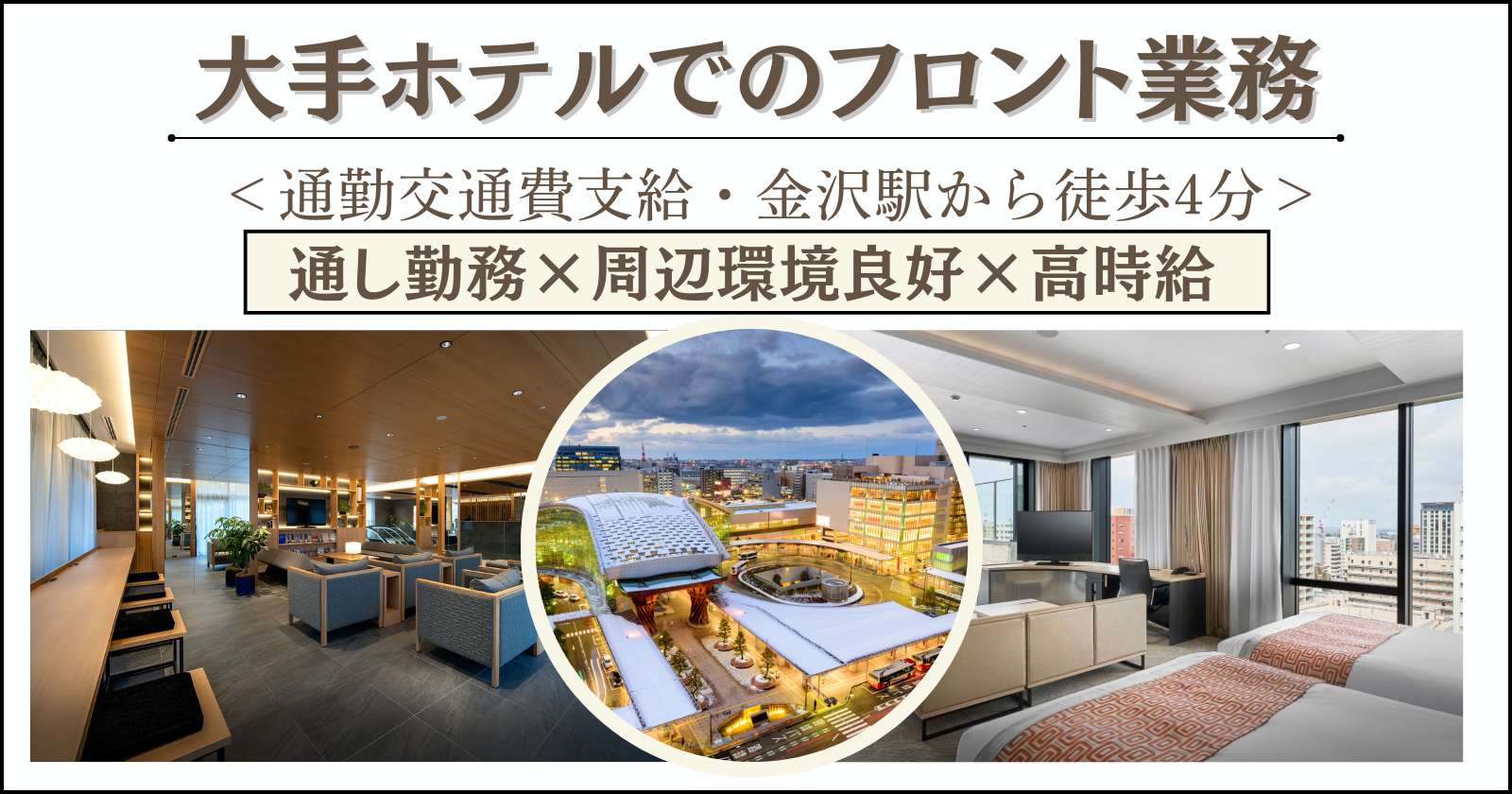 石川県金沢市のシティホテルで時給1,400円、フロント・ベルの住み込みリゾートバイト!(求人No.543584)