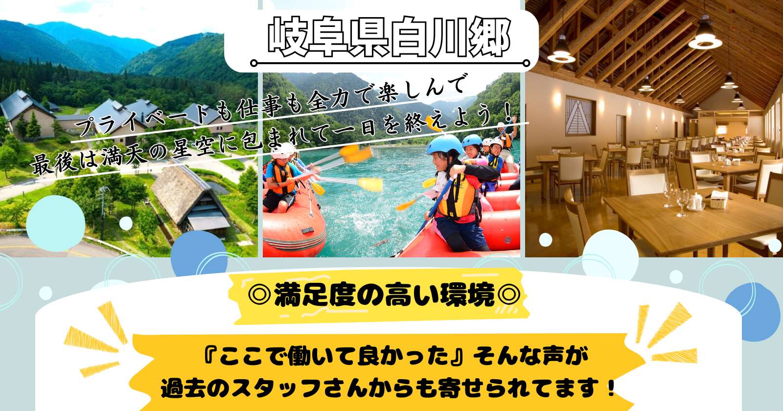 岐阜県白川郷のレジャー施設で時給1,200円、レストランサービスの住み込みリゾートバイト!(求人No.547651)