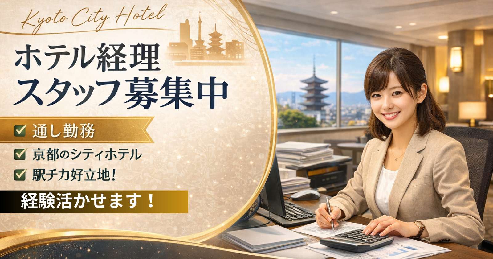 京都府京都市のシティホテルで時給1,250円、内務の住み込みリゾートバイト!(求人No.548663)