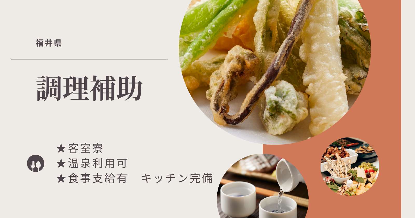 個室寮、寮費無料、光熱費無料、給与前借制度あり、交通費支給あり、残業代支給、夜間手当有、温泉利用可能、社会保険完備、労災保険完備、雇用保険完備